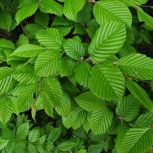 Листва появляется весной и не опадает до глубокой осени. Листья среднего размера, продолговато-яйцевидной формы. У листовых пластинок короткий заостренный кончик и дважды зубчатые края. Параллельные прожилки создают «эффект гофре». Листья весной и летом темно-зеленые, осенью — желто-оранжевые.